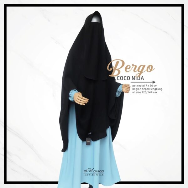 Bergo model agak lancip depan seperti edisi arshely, tp kanan kiri tidak terlalu naik