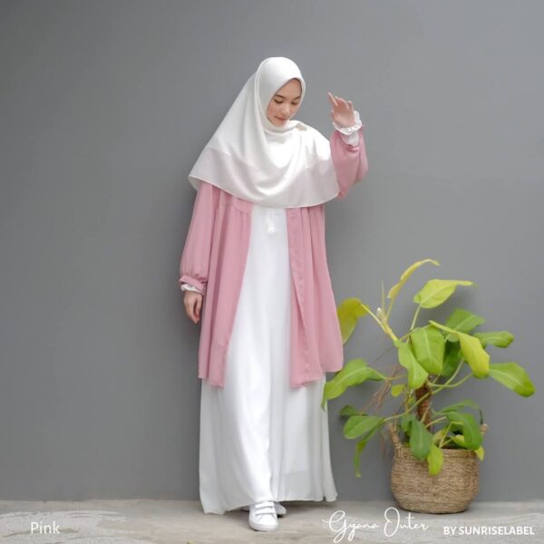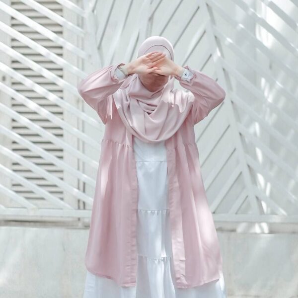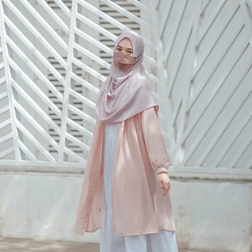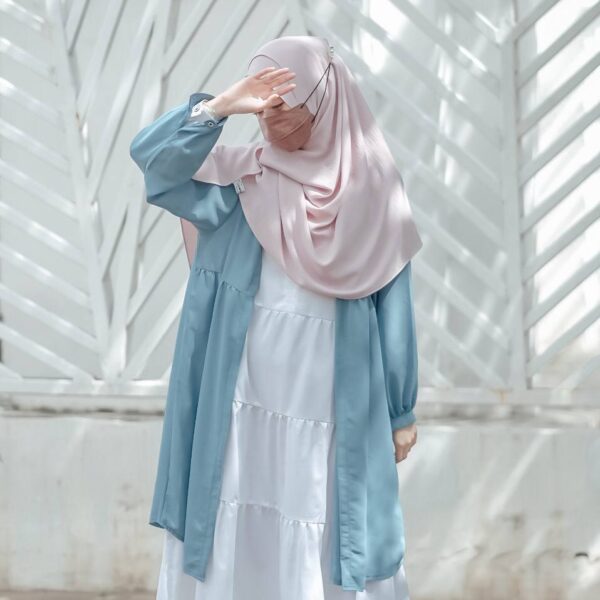 Bismillah. Pengin tampil lebih fresh dengan gamis lamamu? Tambahi outer ajah